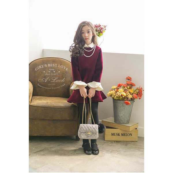 時尚新款搶先登氣質兒童禮服洋裝【秋冬內刷軟毛洋裝】韓版氣質天鵝絨加絨加厚時尚連衣裙/秋冬洋裝☆7-17