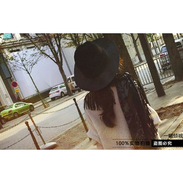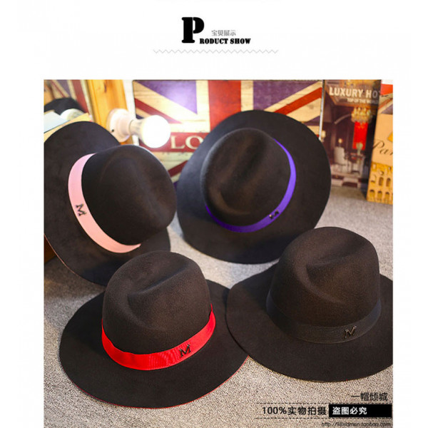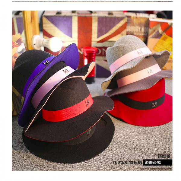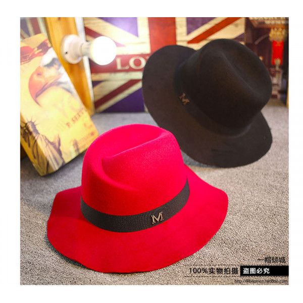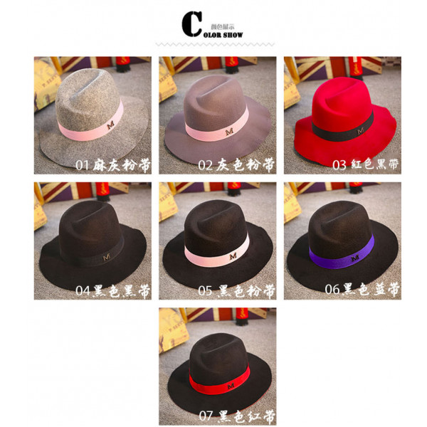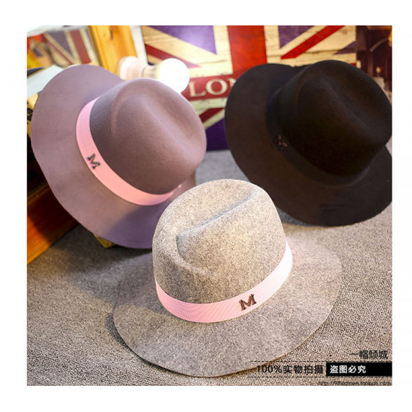M字母禮帽子韓國秋冬天英倫爵士大簷黑色標帽/漁夫帽/ 防曬帽