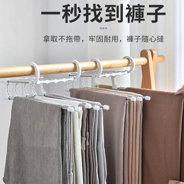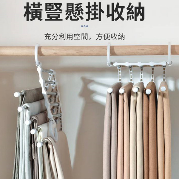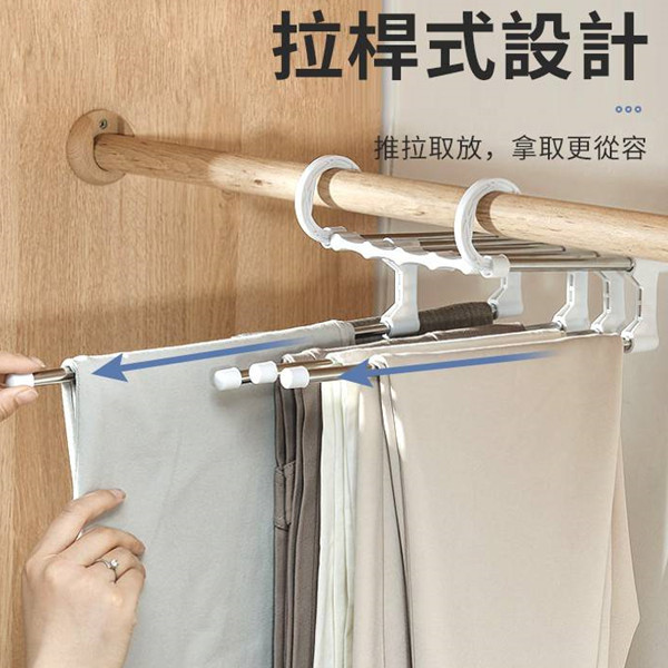 【生活居家百貨系列】拉桿設計 多功能魔術褲架 五合一褲子收納折疊架 收納架 多功能褲架 衣褲架 S型褲架