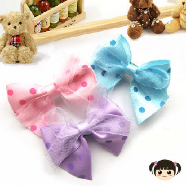 【兒童配件髮飾,宴會造型系列】韓版-雙蝴蝶結圓點髮夾/兒童髮夾/兒童髮飾/瀏海夾/彈簧夾《1入裝》☆