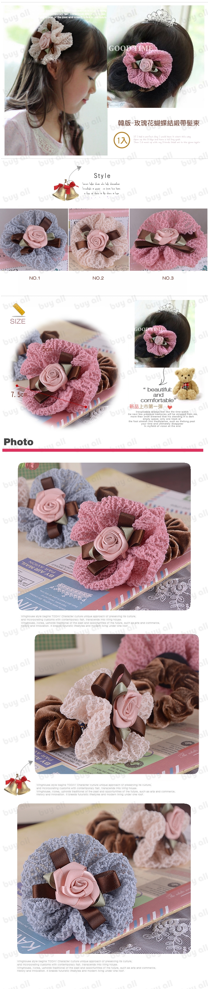 【兒童宴會,表演,裝扮配件髮飾造型系列】大人小孩皆可用-韓版-玫瑰花蝴蝶結緞帶髮束/髮繩/兒童髮飾/兒童飾品☆